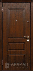 Коричневая входная дверь в цвете темный орех с двух сторон для сталинки №7
